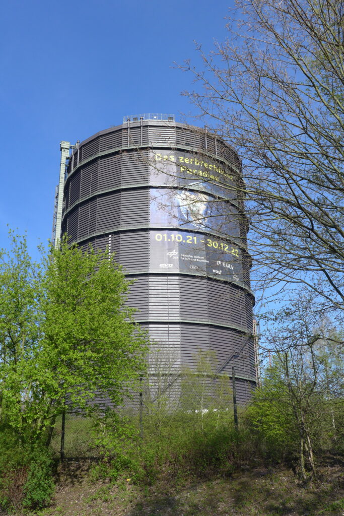 Ab Oberhausen hat mich mein Schwager Carsten ein Stück lang begleitet. In Oberhausen treffen wir auch auf das nächste museale Industriedenkmal, den Gasometer (falls es mal jemanden nach Oberhausen verschlägt, auch ohne Ausstellung lohnt sich hier ein Blick vom Dach.)