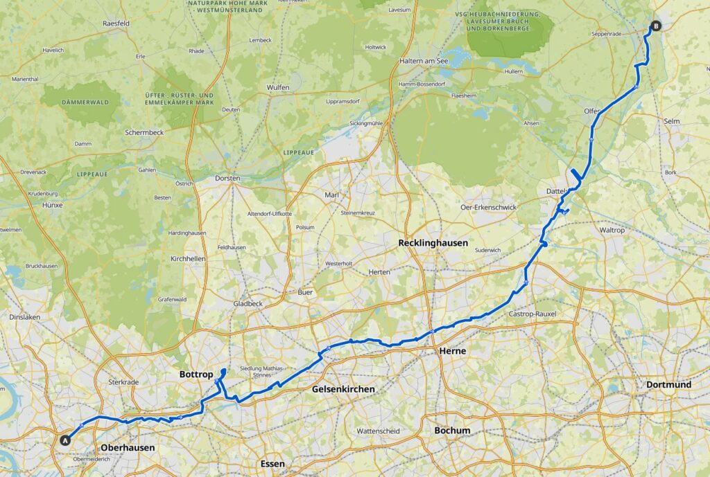 Heute erwartete mich eine Fahrt einmal quer durchs nördliche Ruhrgebiet immer in Nähe zur Emscher und zum Rhein-Herne-Kanal. Wo früher Kohlebahnen gerollt sind, ist heute viel Platz für andere Verkehrsmittel und daher konnte ich mich für die ersten Kilometer über diesen tollen Weg freuen.