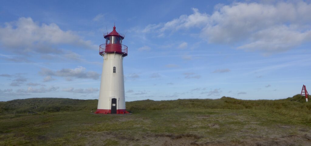 Von dort ging’s dann über die halbe Insel südlich bis Westerland durch Dünen und vorbei an Leuchttürmen und Baken bis Westerland.