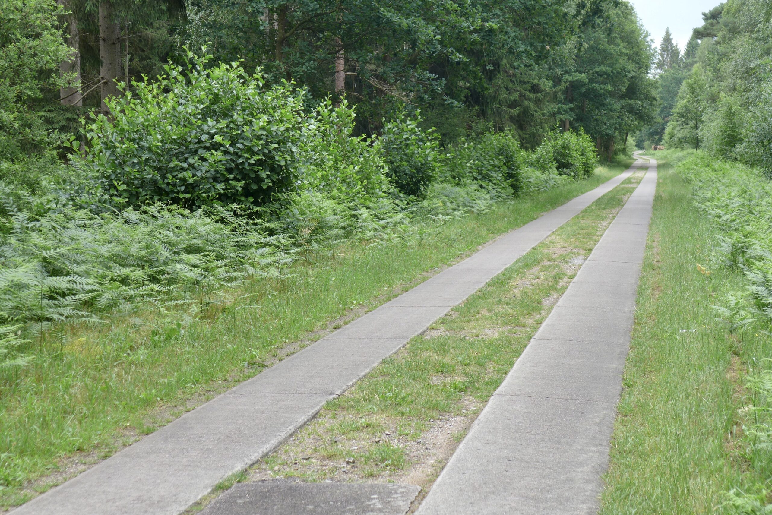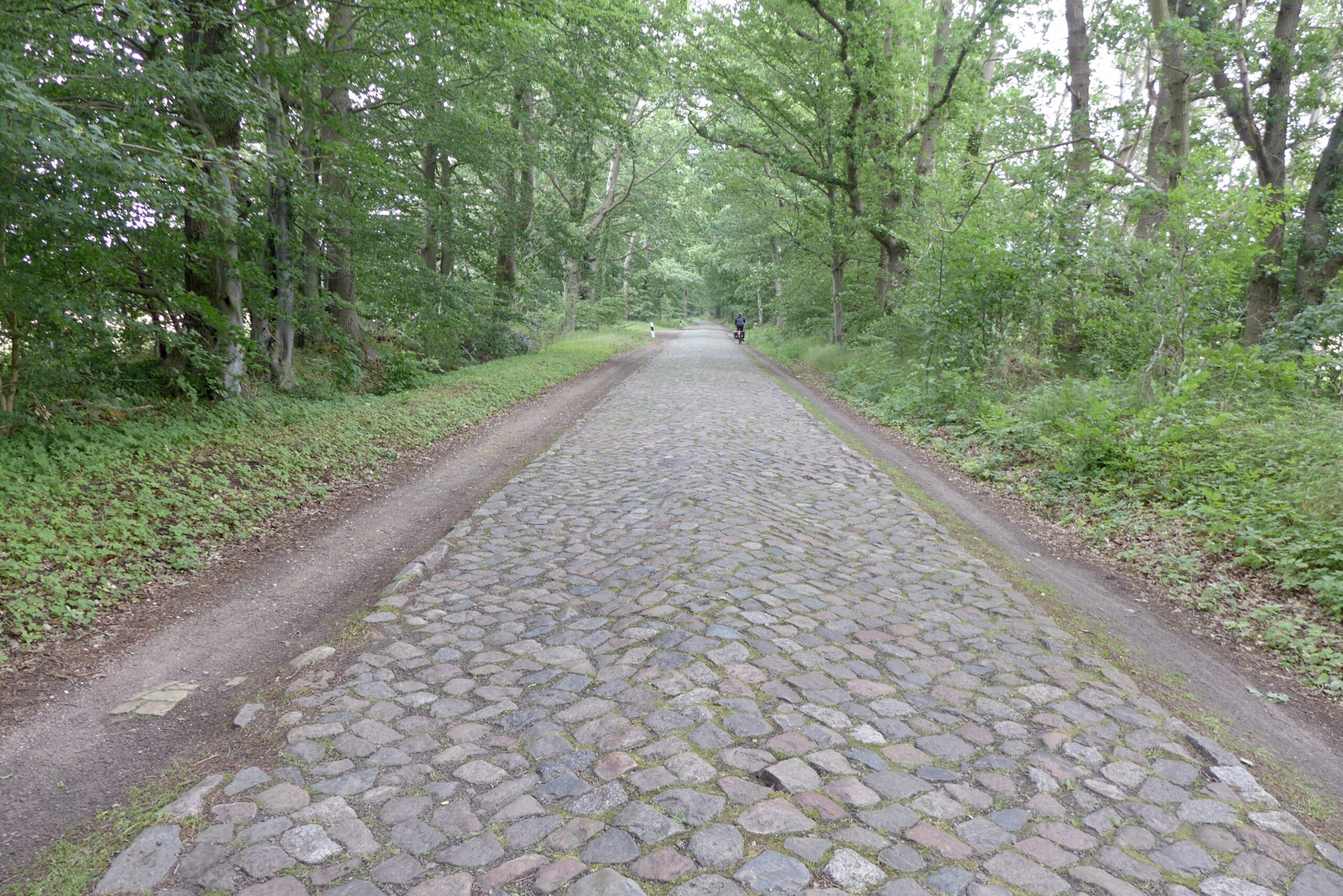 Die Fahrt von Bentwich bis zum Fischland-Darß-Einstieg in Dierhagen gibt nichts her, was zu erzählen wäre. Wir fahren an Landstraßen und durch Wälder. Bei kleineren Straßen, die als Radwege ausgewiesen sind, kann man durchaus Überraschungen erleben. Relativ gut fahrbar, aber wegen der Höhenunterschiede nicht ungefährlich sind die noch reichlich vorhandenen Wege mit einem Mix aus Beton und Grünstreifen. Wie aber reine Kopfsteinpflasterstraßen als Radrouten ausgewiesen werden können, erschließt sich nicht ganz. Wenn man Glück hat, ist wenigstens der Randstreifen befahrbar.