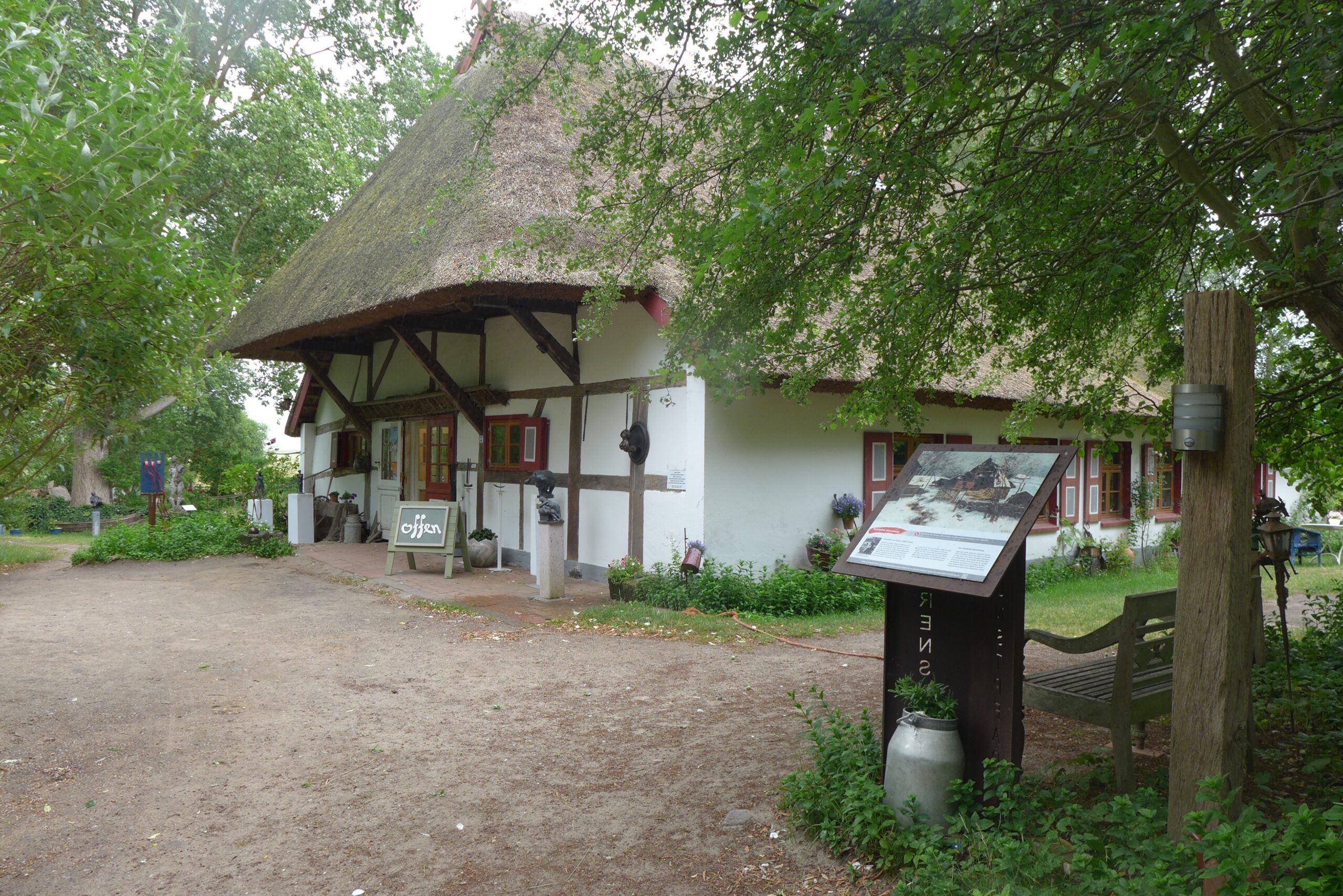 Durch Ahrenshoop (Künstlerdorf, verregnet, schöne Häuser, Museen, …) verläuft die Grenze zwischen Mecklenburg (westlich) und Vorpommern. Wer davon der fröhliche Geschwätzige und wer der verschlossene Sturkopf ist oder ob es überhaupt Unterschiede gibt, können wir nicht feststellen.