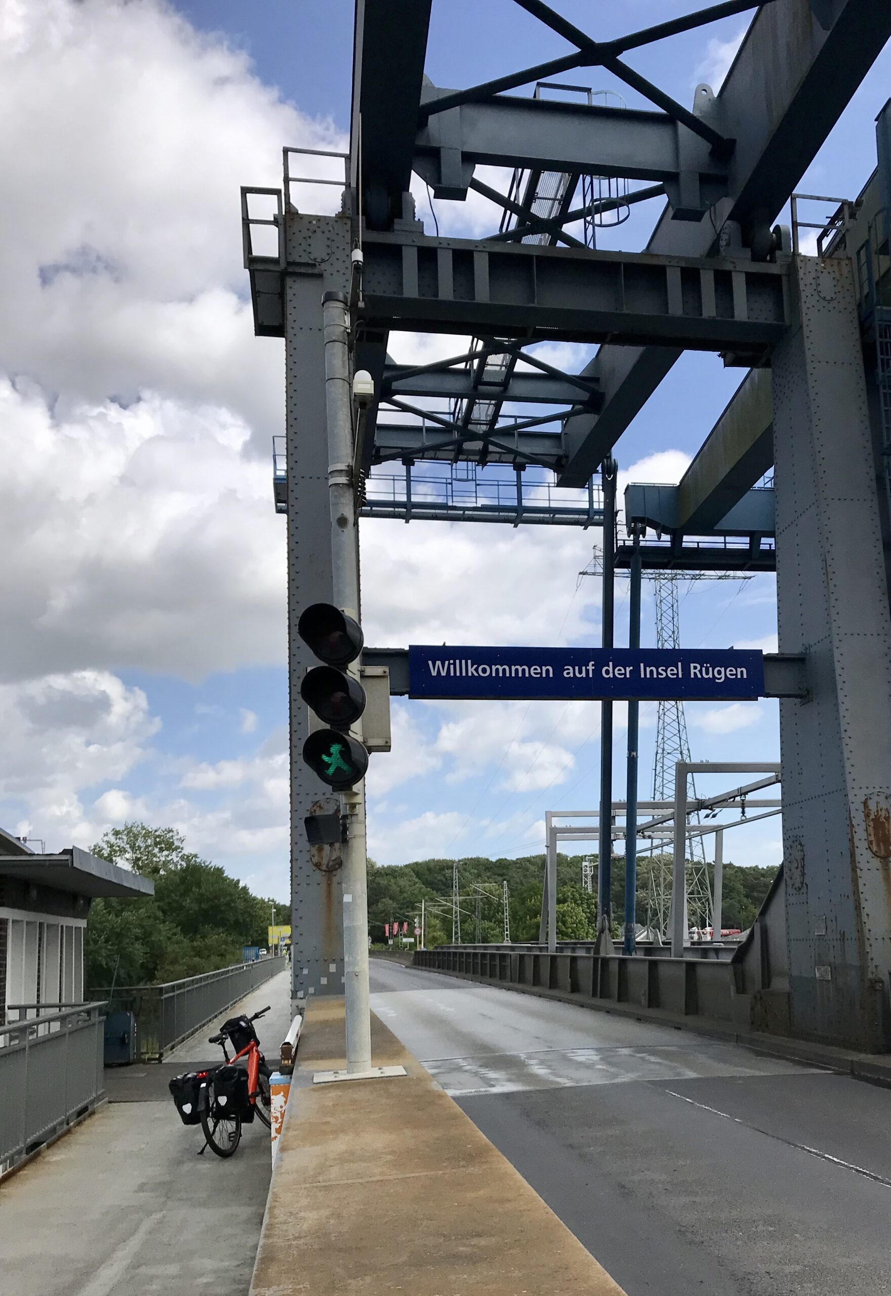 Über den Strelasund geht es zur Insel Rügen. Leider fahren wir nicht über die schöne große Sundbrücke, sondern nur daneben über eine ältere kleinere Brücke. Dadurch haben wir aber einen Superblick.
