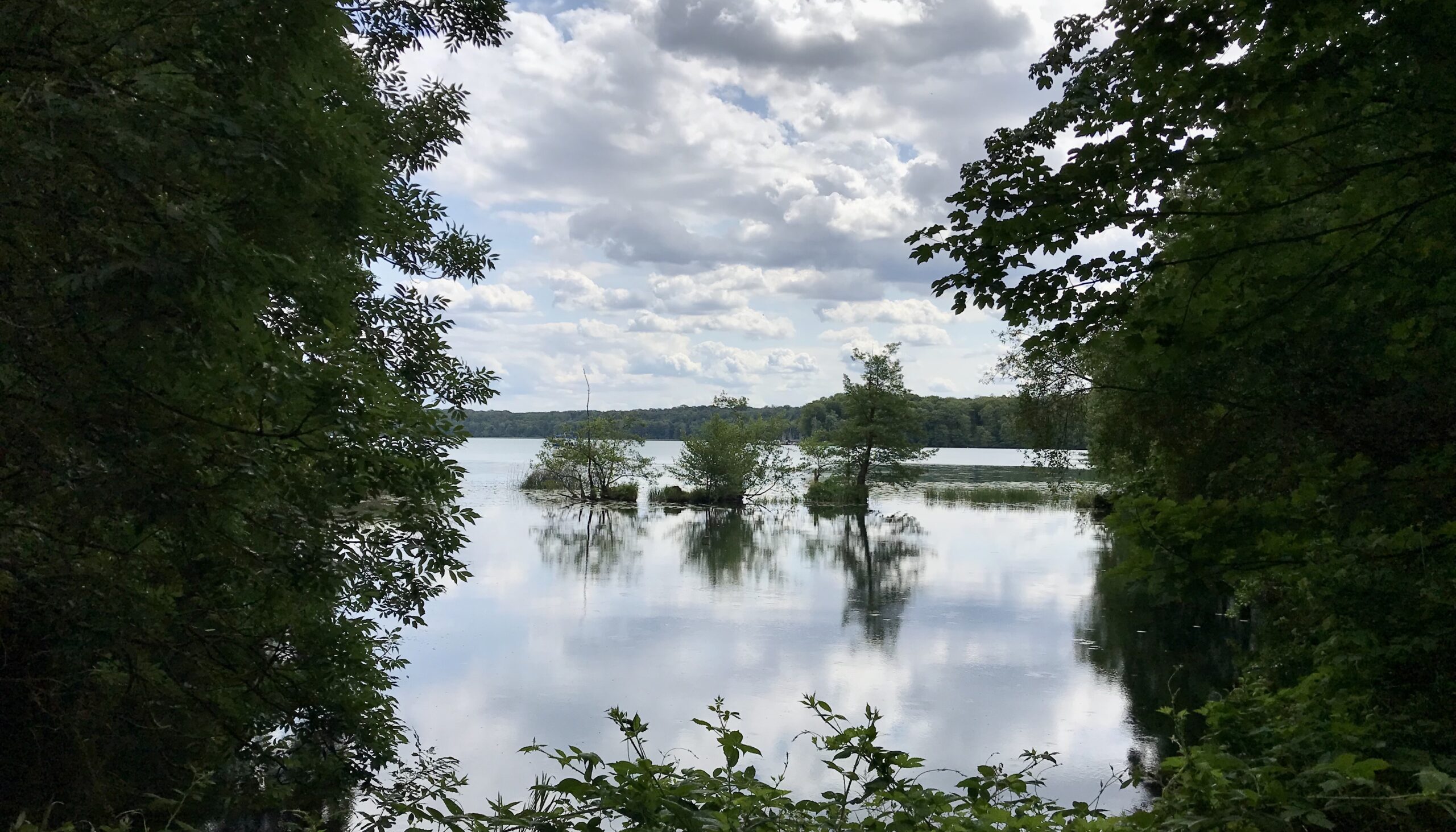 Das einsame Bild ändert sich, als wir die Autobahn Berlin – Stettin überqueren und uns im weiteren Speckgürtel Berlins befinden. Hier gibt es Neubaugebiete in den nahe den Autobahnausfahrten gelegenen Orten. Auch die Landschaft ändert sich, es reiht sich See an See, jeweils verbunden durch kleine Kanäle. Die Anzahl Berliner Kennzeichen lässt auf Wochenendhäuser und Naherholungsgebiet schließen. Ist ja auch schön hier. Neben Ferienkolonien und kleineren Marinas – aber mit mehr Booten als in Gartz – gibt es auch viel Natur zu sehen.