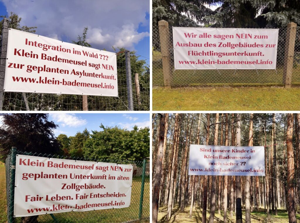 Gespannt bin ich auf das Dörfchen mit dem schönen Namen Klein Bademeusel, bin aber sehr erschreckt, als ich es erreiche. Diese Plakate erwarten mich