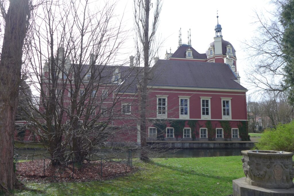 Es wird waldiger, kurviger und hügeliger und damit auch windgeschützter, das Radlerherz freut sich. Kurz darauf erreiche ich Bad Muskau mit Schloss und Fürst-Pückler-Park. Fürst Pückler war ein Tausendsassa, nicht nur Landschaftsplaner sondern auch Erfinder des Speiseeis und der Pickelhaube. Das Schloss im Park macht tüchtig was her.
