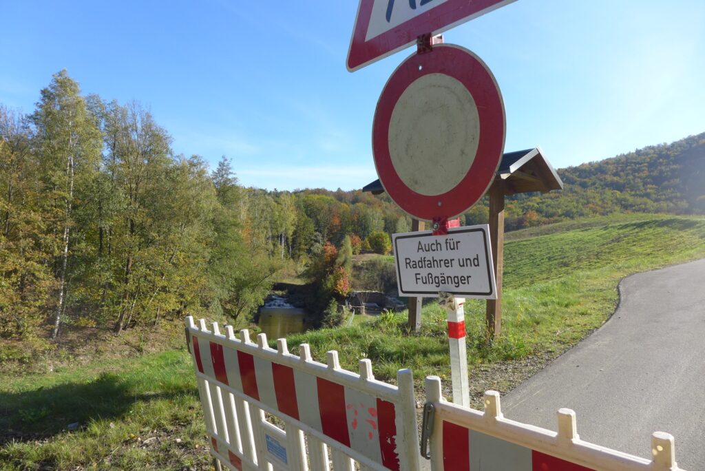 Kurz hinter Schwarzenberg stößt man dann auf einen flussbegleitenden Radweg nach Lauter und Aue. Super, denke ich, da geht es ja voran. Und nichts kann mich aufhalten, auch nicht dieses blöde Schild: