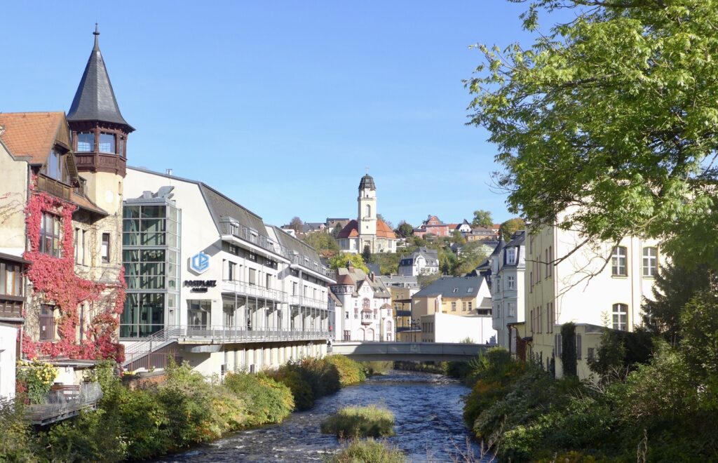 Aue selbst gibt nichts her, sieht nach ehemaliger Industriestadt aus, leider völlig ohne Aufenthaltsqualität (noch eine Parallele zu Gelsenkirchen?). Vielleicht erbarmt sich mal ein Stadtplaner und wertet zumindest mal die flussnahe Innenstadt auf.