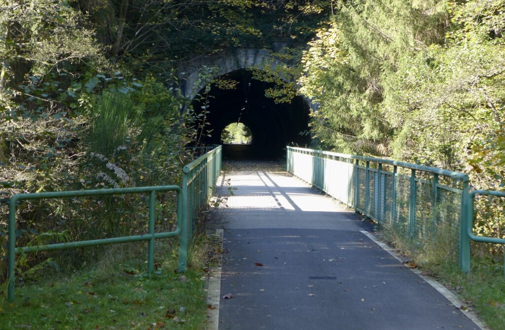 Von Aue aus führt dann der quasi futschhagelneue Mulderadweg auf einer alten Bahntrasse mit Superbelag und gleichmäßiger, geringer Steigung Richtung Süden. Der Mulderadweg ist hier auf einer Strecke von etwa 15 km fertiggestellt, ein Highlight ist die Durchfahhrt durch den Bahntunnel: