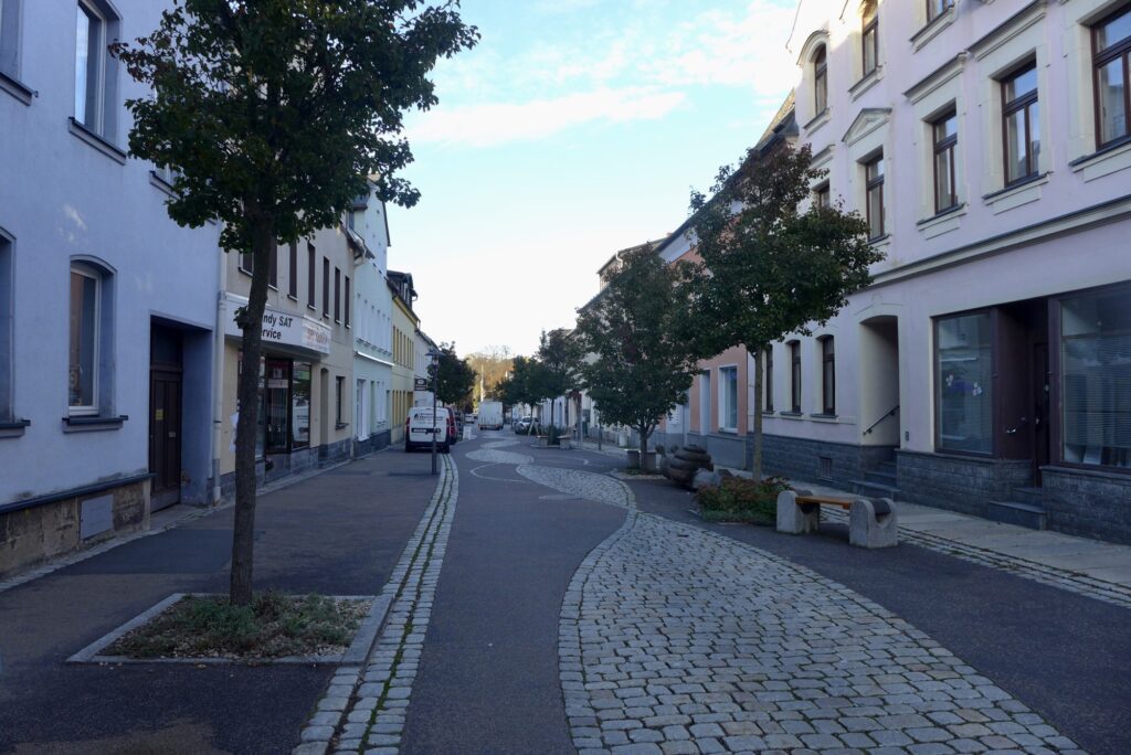 Die letzten Kilometer geht es dann noch mal tüchtig hoch nach Falkenstein. Falkenstein liegt nicht mehr im Erzgebirge, sondern schon im Vogtland. Und es tut mir wirklich leid, aber für Falkenstein sieht es nicht gut aus, trotz der schönen Gegend hier. Sehr viel Leerstand und dann noch dies: