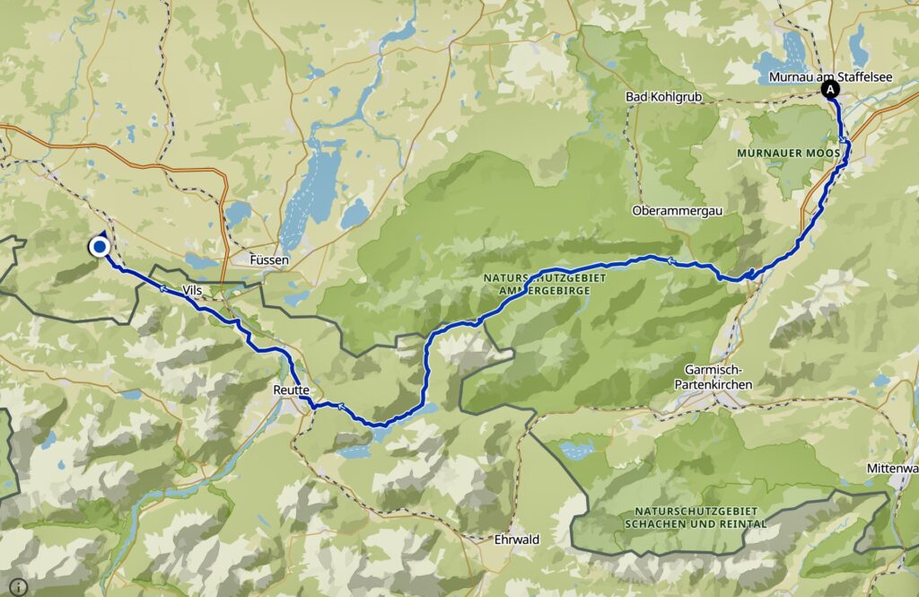 Mit Wetterprognosen, die zwischen gar keinem und Dauerregen alle Möglichkeiten offen lassen, starten wir in Murnau an der Loisach entlang nach Süden.