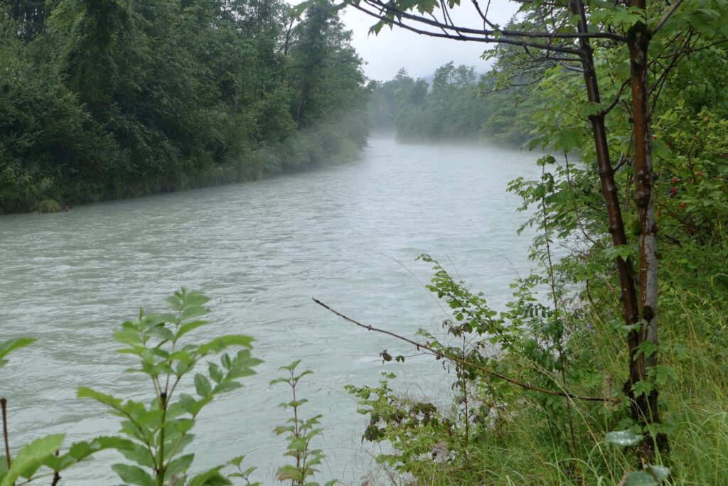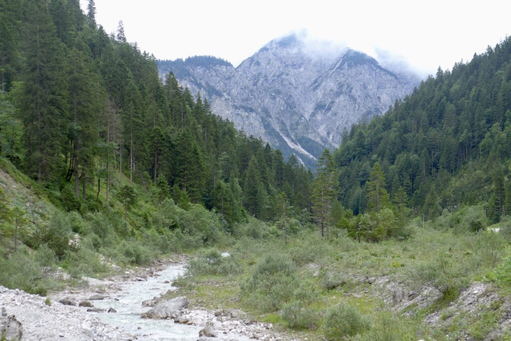 Leider hält die regenlose Zeit nur kurz und noch im Loisachtal kommt die Regenkleidung zum Einsatz.