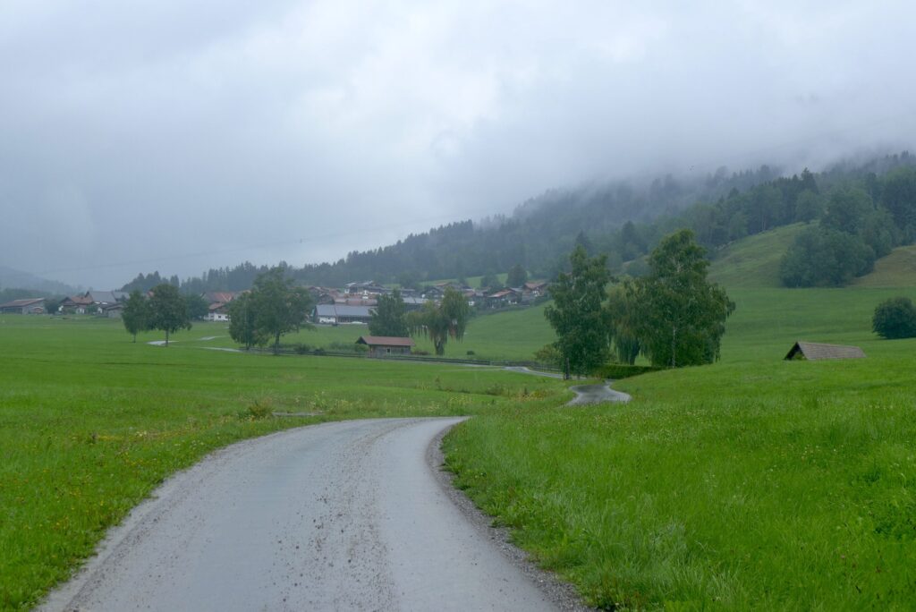 Mit Fotografieren gestaltet es sich heute schwierig, alles wird direkt nass, das Grau ist überall gleich und Berge sieht man auch nicht. Wir fahren um die Albspitze herum hügelig bis Sonthofen.