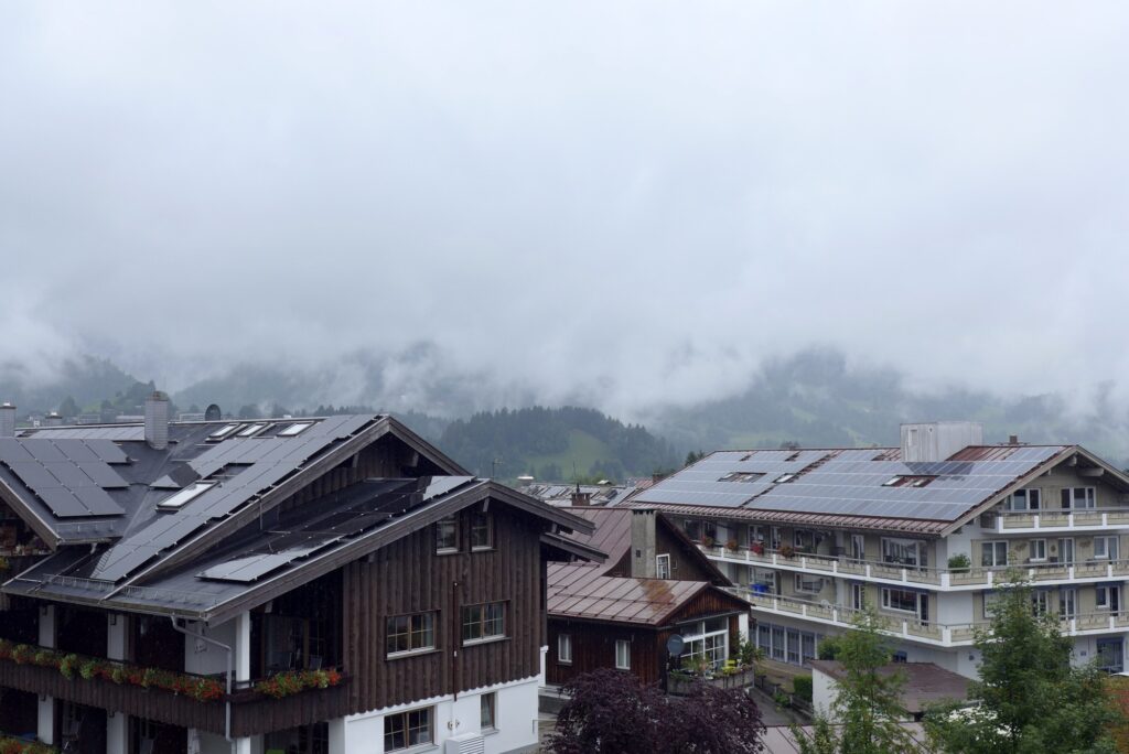 Recht früh erreichen wir Oberstdorf. Sehr erfreulich ist unser Zimmer schon zu beziehen. Der Blick von unserem Balkon auf das Nebelhorn sieht so aus.