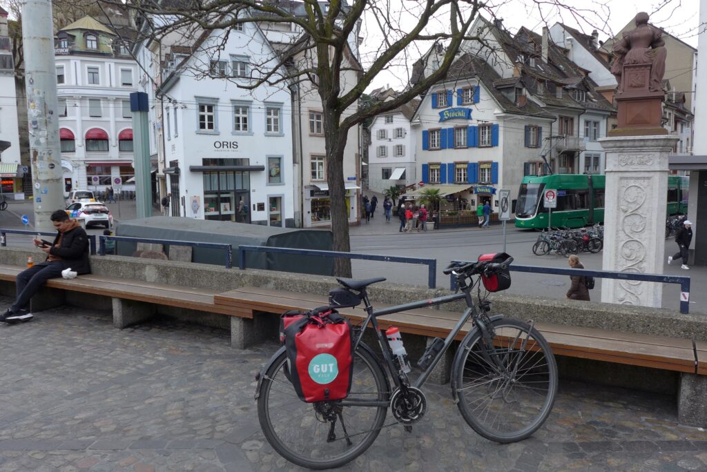 Dann erreiche ich Basel. Aus irgendwelchen Gründen ist die Schweiz in Basel noch mal auf die nördliche Seite geschwappt. Mit einem vollbepackten Fahrrad Städte besichtigen ist nur suboptimal. Ich fahre ein paar Punkte an, möchte aber das Rad nicht unbeaufsichtigt stehen lassen.